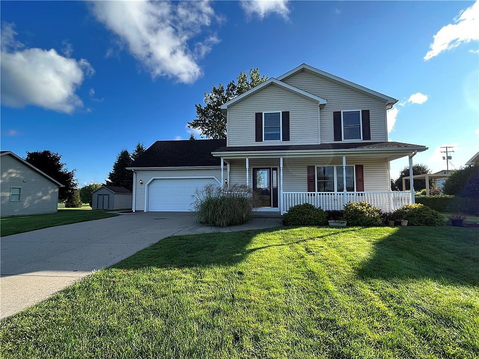 Excellent opportunity for newer construction in Harborcreek! High ceilings and large windows make this one feel even larger than it is. Large, open kitchen with island, all appliances, and walk in pantry is completely open to the dining area. Spacious living room with gas fireplace and lots of natural light. Second floor laundry for convenience. Enjoy your evenings on the large concrete patio or on your new front porch! High and dry basement could easily be finished for more living space. Tons of storage throughout. Only steps from Downing Golf Course and East Erie Moose.