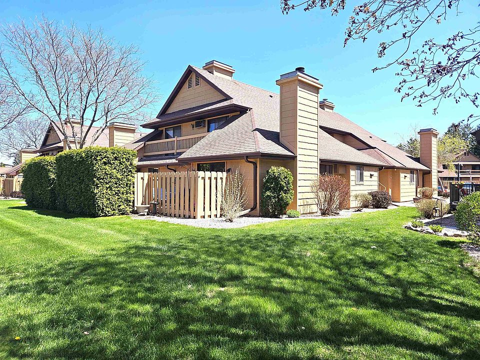 Enjoy hassle-free living in this charming 2-bed, 1-bath, zero-entry 1st floor condo in the beautifully maintained Fox Meadow Condos. The inviting eat-in kitchen features a full-size pantry and flows into a sun-drenched living area with soaring vaulted ceilings and a cozy wood-burning fireplace—perfect for relaxing evenings. The spacious primary suite boasts a generous walk-in closet and private access to the well-appointed en-suite bath. Step outside to your own patio retreat, ideal for morning coffee or unwinding at sunset. Additional perks include in-unit laundry, updated LVP flooring, newer A/C, water heater, and light fixtures. Freshly painted, truly move-in ready. One-car garage. Seller requires 48 hours for acceptance. Showings begin 5/12.