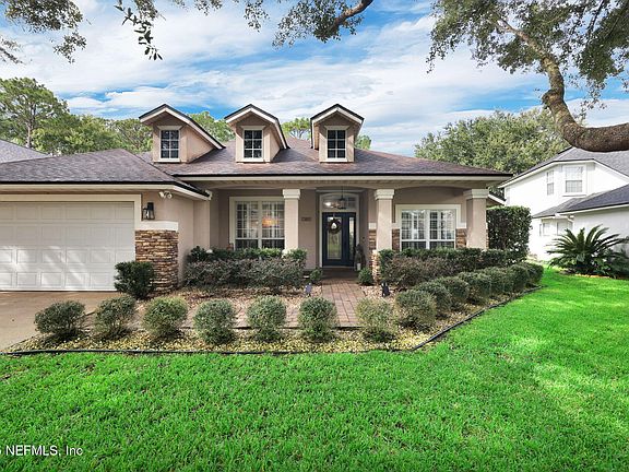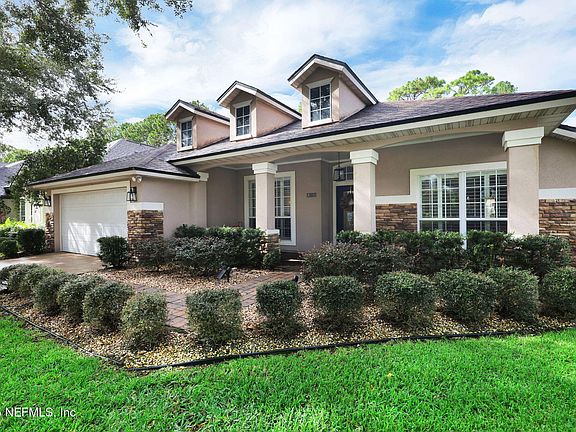 Pablo Bay is one of the most desirable Intracoastal West neighborhoods and this lovely home is ready for its new owners. Enjoy the cool shade under the majestic oaks or have a seat in a rocker on the front porch. This single story, 2438sqft, 4 bedroom, 3 bathroom design is so versatile. The split bedroom floorplan makes for bedtime privacy while the kitchen with stainless appliances and walk in pantry overlooking the large vaulted family room is perfect for entertaining. A charming built in bench creates the perfect breakfast nook for family gatherings, plus the separate dining room can be saved for more formal dinners. An additional flex space gives you options for either an office, exercise, craft or play room. Open the telescoping triple slider to the covered screened porch and expand the family room while enjoying cooler days ahead. Children's playset in the backyard can stay or start making plans to build your own private pool. New water heater and microwave, HVAC 5 yrs old. Pablo Bay also offers incredible neighborhood amenities including adult lap and children's pools, pickleball courts, tennis court, basketball hoop, dog park, two playgrounds and more. Community events include Thursday Food Truck night, Happy Hours, Field Day, Easter Egg Hunt, July 4th Fire Engine Parade and Ice Cream Social, Holiday Party with Santa Photos and many more fun activities. Right over the Intracoastal waterway from our beautiful area beaches and only minutes to the world renowned Mayo Clinic, The Players Championship Golf Course and Town Center shopping. Showings begin on Saturday so make your appointment today!