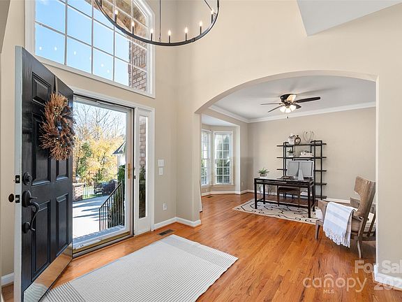 Welcome to this beautifully updated and well-maintained cul-de-sac home in Ballantyne Meadows—one of South Charlotte’s most sought-after neighborhoods. Enjoy nearby Stonecrest, The Bowl, Blakeney, and Waverly, plus top-rated schools and a peaceful, tree-lined setting. Inside, an inviting open floor plan features hardwoods throughout both levels. The stunning entry leads to a bright two-story great room with a new Verdian gas fireplace. The updated kitchen offers all-new stainless steel appliances —including a Whirlpool convection/air-fryer oven, Whirlpool french door refrigerator, dishwasher, and microwave—and opens to a cozy den with a custom stone gas fireplace and bay window overlooking the private, wooded backyard. The spacious primary suite includes a sitting area, dual vanities, garden tub, tile floor, and large walk-in closet. Additional bedrooms are generous and versatile—perfect for guests, office, or play space. Major updates include new HVAC systems (2021 & 12/2022), polyaspartic garage floor coating with 10-year warranty, new toilets, new powder room sink, new lighting, new modern ceiling fans, new. hardware throughout, Sprite filterable shower heads, fresh interior paint, and designer fixtures as well as LED recessed trim cans with night light feature. Washer and dryer remain with the home. Roof replaced 2017, crawlspace w/ vapor barrier, and Rainwater irrigation system serviced annually. Enjoy watching birds and deer from the large back deck! The private backyard offers a peaceful retreat with dense trees providing a natural buffer. It’s fully fenced, flat, and features French drains, mature trees, and a custom elevated stone-covered dog run—perfect for pets or play. The neighborhood playground is just up the street. Every detail has been thoughtfully maintained, making this home a rare find—immaculate, move-in ready, and easy to love!