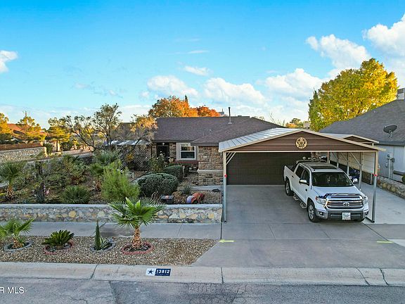 Discover your next home at 13812 Desert Highlands Dr. in Horizon City, TX! This charming 3-bedroom, 2-bath home spans 1,491 sq ft and sits on a spacious corner lot. Stay comfortable year-round with refrigerated air, and enjoy the convenience of a double garage and three covered carports for ample parking.