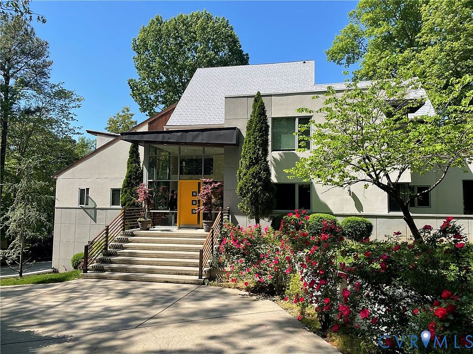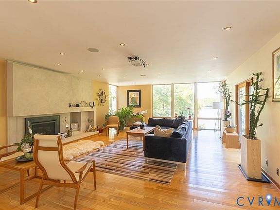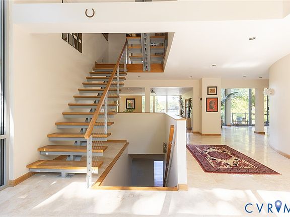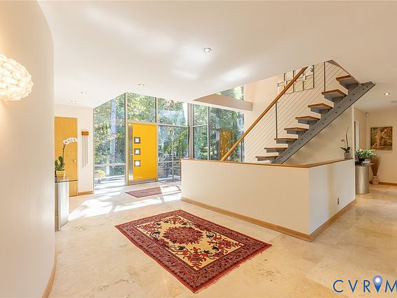 Step into a world where luxury meets tranquility in this breathtaking, professionally designed, waterfront estate, w/ panoramic views of the 1,700-acre Swift Creek Reservoir. Suggested updates are completed. The glass foyer boasts copper roof accents & a gracefully floating staircase. Travertine tile and warm light set the tone for timeless elegance throughout. The great room captivates w/ water views, a handcrafted american clay fireplace, & solid oak floors. Enjoy cozy evenings or grand gatherings in perfect harmony. Floor-to-ceiling glass in the dining area brings in endless light & waterfront vistas. The Kitchen is a culinary dream featuring European style bamboo cabinetry, paperstone counters w/ luxurious marble work surfaces, state of the art appliances, cooking w/ gas, electric or grill, & a butcherblock island crafted from exquisite English wood! Step onto the ipe deck framed by clear balustrades for unobstructed views. Along w/ a spiral staircase leading to a stone patio, koi pond, & lush gardens for peaceful outdoor living. Climate comfort is ensured w/ 4 geothermal wells, radiant underfloor heating, solar-ready design, & a high-efficiency fantech energy recovery ventilation system delivering filtered air & energy savings year-round. Having 2 additional rooms on the main floor for offices or playrooms. The 1st floor primary is a retreat offering comfort, accessibility, & breathtaking views along w/ a relaxing soaking tub & a beautifully crafted stone shower. The 2nd floor Primary brings breathtaking views, elegant pine ceilings, a hand-crafted american clay fireplace, two separate bathing areas, a luxurious shower, & a large bathtub w/ a water view. Along w/ two additional bedrooms & an au pair suite. The basement is a versatile space for exercise, dance, yoga, sauna, stylish entertainment, or just relaxation w/ wonderful water views & joins the relaxing stone patio. Opportunities like this are exceedingly rare, as this estate defines waterfront living in Brandermill—schedule your private tour today!