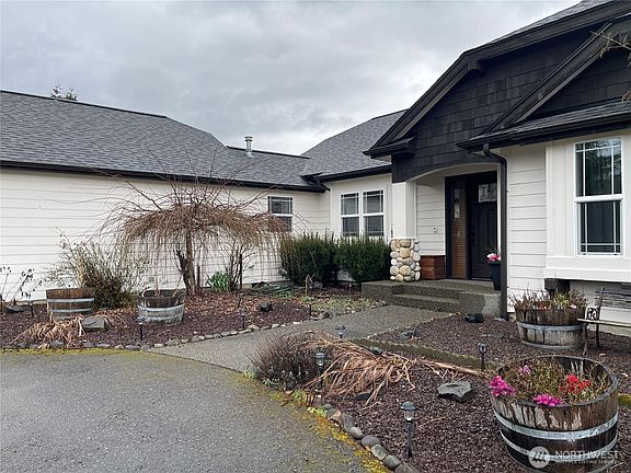 4.37 acres at the foot of Capitol Forest & Mt Rainier Views! Custom design 2333 sq ft floor plan with a large updated bathroom adjoining a 2 room primary suite. Vaulted great room with view of Mt. Rainer beyond your fenced & cross fenced pasture. Spacious bright open kitchen with Carrara quartz counters & huge center island & appliances stay! Mud/utility room with 1/2 bath off kitchen leading to garage. Office & living room share a dual propane fireplace & the office shares a full bath with the 3rd bedroom. There is a 1728 sq ft, 3 stall barn for your horses with exterior covered machine storage, custom built chicken coop, large outbuilding, circular asphalt drive & plenty of open space to garden. New roof 2024 & paint. An equestrian dream!