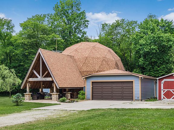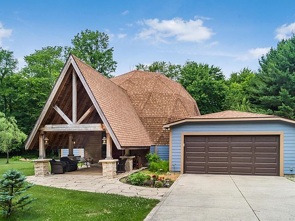 Feel like you are on vacation without leaving home! This unique home sits on 5 peaceful wooded acres with a stream. Begin by experiencing the lodge like entry of this 2,903 SQ FT, 4 bedroom, 3 full bath home. Entering the home you will begin to relax in the spacious entrance that leads to the dining room. The 1st floor includes the kitchen, large laundry/mud room and a living room w/ wood burning stove. Sliding doors access your park like setting that including a gravel patio & fire pit for those cool Ohio evenings. A 1st FL bedroom and FB complete the main level. The 2nd level includes a master suite with attached bath, and 2 additional bedrooms connected by a J & J bath. Large loft area on the 3rd level has endless possibilities. A full basement and 2 car garage complete this home.