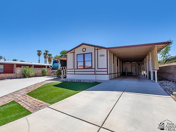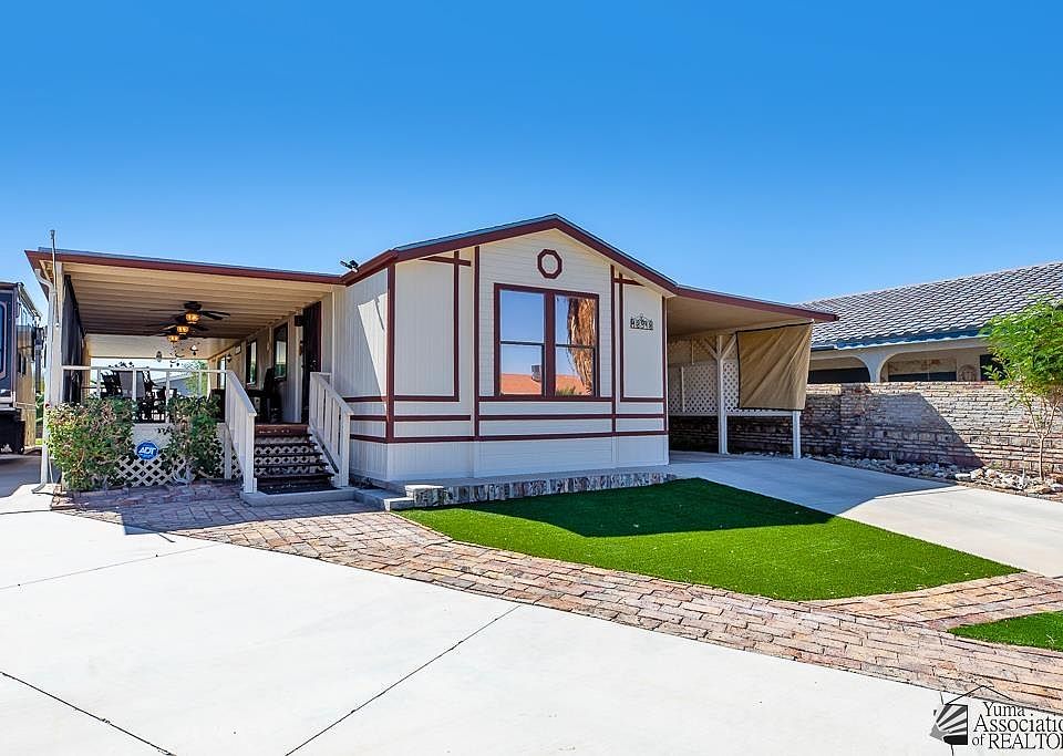 Beautifully-maintained and partially-furnished 2 bed/ 2bath singlewide mobile home in Foothills Mobile Estates. The open-concept layout and vaulted ceilings create a bright and airy feel. The spacious kitchen is a true centerpiece, featuring stainless steel appliances, abundant counter space, and plenty of cabinets. Outdoors, enjoy a covered deck for hosting friends and family, and a spa for relaxing evenings. The front and backyards are neatly landscaped with easy-care, low-maintenance features, adding to the home’s charm without the extra work. A storage shed and workshop provide excellent space for hobbies and tools, and RV hookups offer added convenience for guests or travel. Tucked away in a quiet neighborhood, this property combines comfort and functionality, all while being close to shopping, dining, and other amenities in the growing Yuma Foothills. It’s the perfect place to call home!