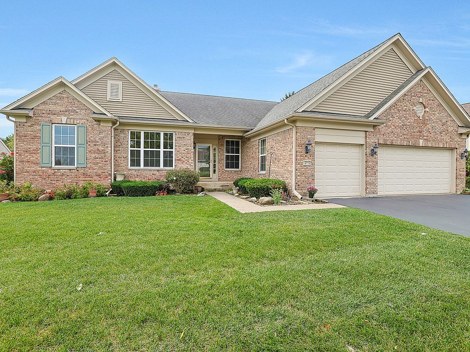 Elegant Ashcroft in the highly sought after Reserves of Del Webb Sun City Huntley! Private lot backing to berm & mature trees ~3124 sq ft on main level with 2 Bedrooms, 2.5 Baths plus Den, Sunroom, Full Basement & 3 car garage~Brick elevation~Fireplace~Open floor plan is great for entertaining~Gourmet kitchen with huge island, double oven, brand new dishwasher, butler's pantry & breakfast area~Fantastic Primary Suite includes spacious sitting area & walk-in closet, Double Corian Vanity, garden tub & extra cabinets in bathroom~2nd Bedroom Suite has bay window, walk-in closet & private bathroom~3106 sq ft deep pour full unfinished basement w rough-in~Plush landscaping w lawn irrigation system~Patio~HVAC has been replaced~Newer Water Heater~Come join the fun in Sun City's 55 & over resort like community with all of the amenities~2 outdoor pools~2 exercise facilities~Walking & bike trails~Indoor walking track~Pickleball, tennis, & bocce courts plus so much more!