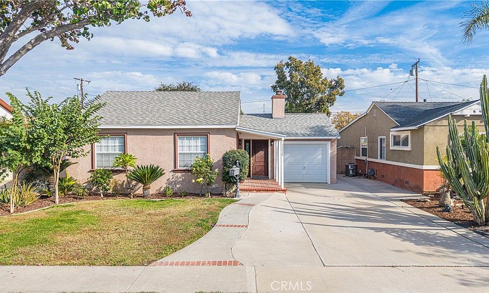 Discover this charming home tucked away in Bellflower. Featuring three bedrooms, two bathrooms, and a family room, this property is sure to impress. Step into a welcoming living room that flows into an open dining and kitchen area. Down the hall, find two bedrooms and a bathroom. A converted enclosed patio now serves as an additional living room, bedroom, and bathroom. The kitchen is equipped with stainless steel appliances, including a stove, microwave, refrigerator, and a new dishwasher. The bathroom has been updated with a modern vanity and tile flooring. The family room is ideal for entertaining guests or providing a fun space for children. The expansive backyard with automated sprinkler system, complete with fruit trees, is perfect for weekend barbecues, gardening, or simply soaking up the sunny California climate. There's also potential for an ADU. The attached drive-through garage includes a Tesla EV charger and laundry facilities. A large driveway accommodates extra vehicles. The sale includes the washer/dryer, all appliances, flat-screen TVs, and furniture. Security cameras and Ring doorbell are installed for your peace of mind. Be advised the property at 13814 Mcnab Ave, Bellflower may qualify for a $7,500 Chase homebuyer grant.