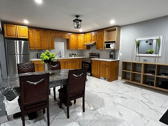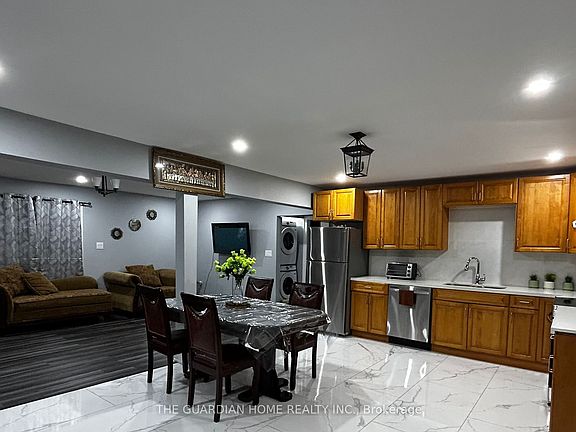 Welcome To This Beautiful 2 Bedrooms, 2 Bathrooms Home Located In A Family Friendly Neighborhood. This Property Featuring Laminate Flooring Throughout The Main Level, A Spacious Kitchen With Quartz Countertops And Wood Cabinetry. An Open-Concept Dining And Great Room With Pot Lights. The Home Also Offers Convenient Main-Floor Laundry And Easy Access To Highway 401,Schools, Parks, Grocery Stores, And More Perfect For Comfortable Family Living. Tenant pays 60% of Heating charges, Utilities Will Be Split Within The 2 Units.
