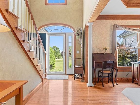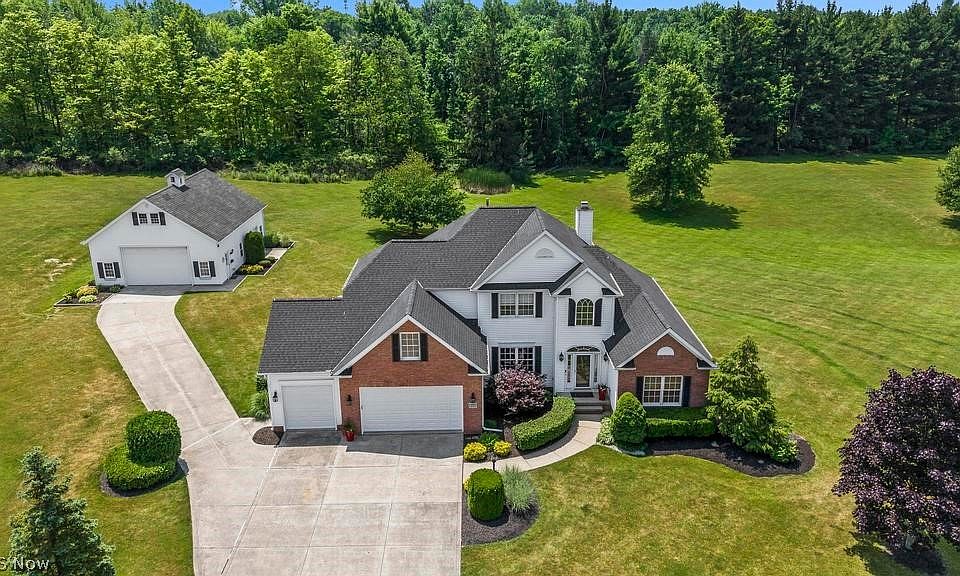 Welcome to your dream home! Nestled in the serene Grandview Estates neighborhood, this stunning one owner Colonial boasts 5 bedrooms, 2.5 baths, & a finished basement totaling just over 4500 sq ft of finished living space on 3.25 acres. Step into elegance as the two story entryway leads to a first-floor office & a spacious dining room with beautiful crown molding. The kitchen is a chef's delight with ample cabinets with pull out drawers, a large pantry, & stainless steele appliances including a beverage fridge. The dinette has plenty of space for seating & leads out to a freshly stained deck overlooking the vast backyard. The 2-story living room features a gas fireplace & custom built-ins & elegant crown molding. The first floor also features a powder room & laundry room for added convenience. The luxurious first-floor master suite boasts an electric fireplace, his & her walk-in closets, & an updated spa-like ensuite with a jacuzzi tub, walk in shower & double vanity with marble counters. Upstairs, discover 3 bedrooms, a full bath, & a bonus room/5th bedroom. The finished basement offers a kitchen/bar area, ample entertainment space, a workout room & another home office with built in desks. This property also features a 2 story 40x30 pole barn that provides additional storage for all your cars, boats & outdoor toys! Just 8 minutes from downtown Chardon & 12 minutes to the freeway, this gem won't last long! Schedule your private tour today!