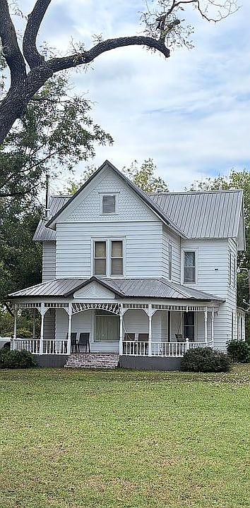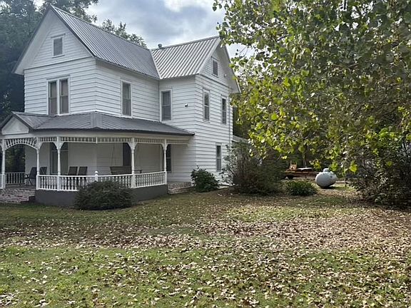 Wide trails loop through the dense forest, where deer and wild turkeys are regular visitors. The two-story home includes a wraparound porch, spacious 9-foot-ceiling rooms, and a one-car garage.
