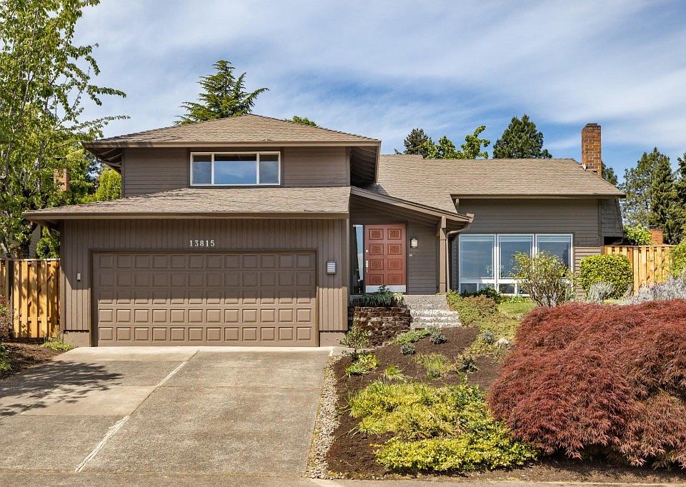 Fantastic updated home full of unique touches! Open floor plan features vaulted ceilings,hardwood & cork flooring, remodeled kitchen w/ concrete counter tops, custom walnut cabinets, & breakfast bar. Large windows bring in lots of natural light and views of the East hills; one can even get a peak of Mt. Hood! Living is easy with a large master bedroom & full daylight basement enhanced with an entertainers' family room. Enjoy relaxing or entertaining on the newly built back deck that leads to a gardener's paradise! Cherry and Pear trees complete the feeling of home on this large lot! Close to downtown Portland, Nike, Beaverton and Hwy 217.