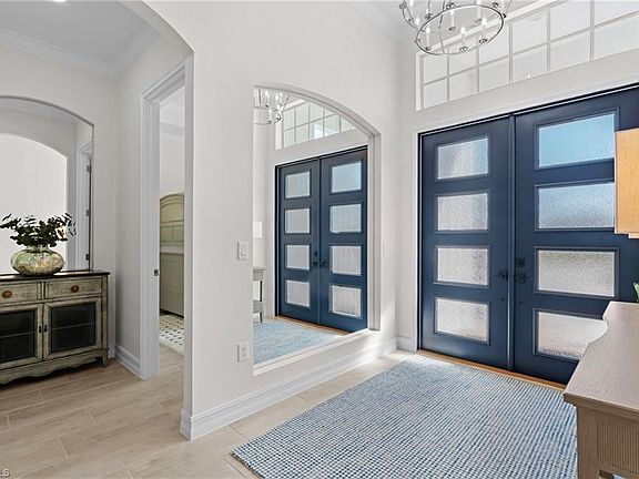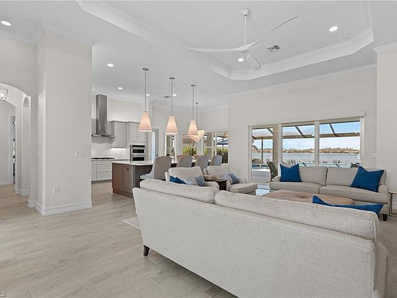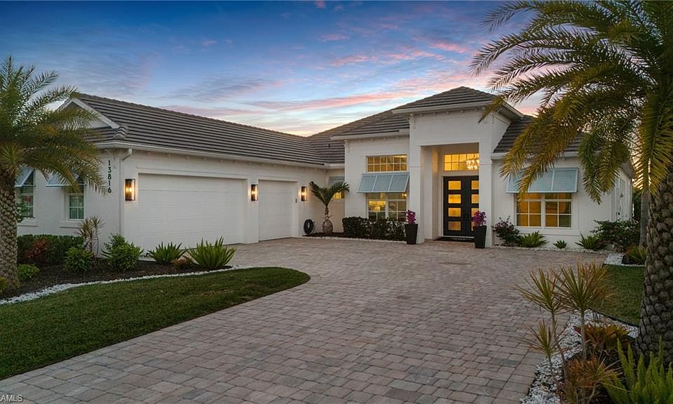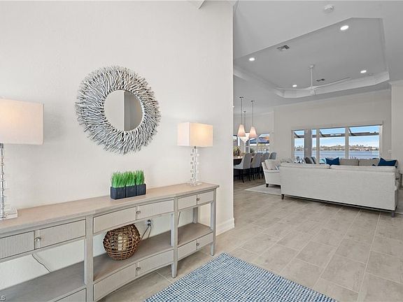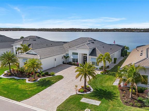 Welcome to 13816 Blue Bay Circle, a stunning lakefront residence in the highly sought-after WildBlue community, offering breathtaking panoramic west facing views and an unparalleled lifestyle of sophistication and comfort. This "Bougainvillea" model has been meticulously transformed into a 4-bedroom + den, 3-bathroom estate with a 3-car epoxied, insulated & air conditioned garage featuring custom shelving. Built in 2022, this home has been elevated with extensive upgrades that redefine modern luxury. Since being built in 2022, this home has had upgrades galore with too many to mention, must see! Some featured upgrades include: whole home generator, entire interior & exterior home painted, Bahama decorative shutters installed across front of house, reverse osmosis system & water softener installed, security system, hurricane impact windows & doors, whole-house dehumidifiers installed on A/C systems & so much more! Step into an interior of timeless elegance, where an open-concept layout flows seamlessly. The gourmet kitchen is a chef’s dream, equipped with new Kitchenaid appliances, a natural gas stove, upgraded soft-close cabinetry, and a striking Calcutta Gold Quartz island. The kitchen opens to spacious living and dining areas, creating the perfect setting for entertaining. The primary suite is a private sanctuary, featuring his and hers custom walk-in closets, dual vanities, and a luxurious soaking tub. Situated on a prime lakefront lot, the outdoor space offers a custom heated saltwater pool and spa designed by Superior Pools, complete with Wi-Fi controls and overfill prevention systems. The travertine extended deck features a fine-mesh screen enclosure, ensuring uninterrupted enjoyment of Florida’s stunning sunsets. Relax on the sun shelf loungers or gather at the outdoor dining area for an al fresco experience. Custom outdoor kitchen & electric hurricane shades also featured on lanai. Landscaping lighting installed around the home to give the home a fabulous ambiance. Plenty of room for boat dock to be installed right in your own backyard! Residents of Wildblue enjoy a wealth of resort style amenities featuring over 800 acres of freshwater lake, 8 pickleball courts, exercise room, lap pool, clubhouse, tennis, spa, nail salon, kayak & boat launch, walking trails, outdoor grille, bar & much more! With no expense being spared, this exquisite residence represents a rare opportunity to experience the best that Southwest Florida has to offer.