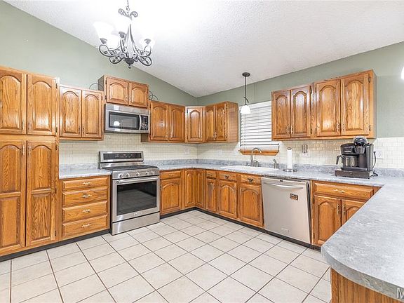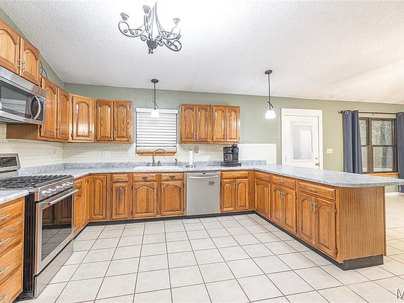 Commercial-style kitchenCustom brick ranchTile accentsSpacious three-car garagePeninsula layoutWood furnacePropane heat