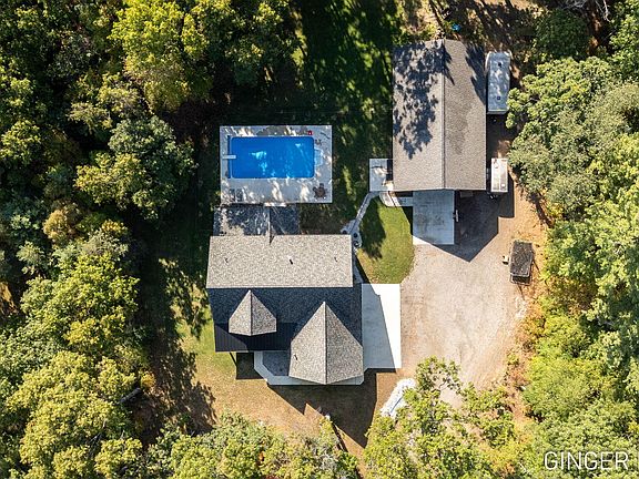 Nestled on 1.98 wooded acres, this newer built home (2023) in Grand Haven offers privacy just 1 mile from Grand River access. The open main floor features soaring ceilings, stone gas fireplace, and primary suite with dual sinks, tiled shower, and large walk in closet. You'll also find the 2nd bedroom, laundry room, beautiful mud room, and 1/2 bath on the main. Upstairs features a family room, full bathroom, 3 bedrooms - one with private bath & walk-in closet - plus a huge unfinished bonus room that could be finished for a 6th bedroom, family room, office, etc. Step outside to find your huge 1,900 sq ft barn with hot & cold water, heated in floor heat, and 14 ft overhead door. The in-ground pool and covered patio is the perfect space to relax, host parties and enjoy! Some additional features are the home is plumbed for central vac (just needs vacuum unit), the electrical panel accessed on the main floor, 3 stall finished attached garage.