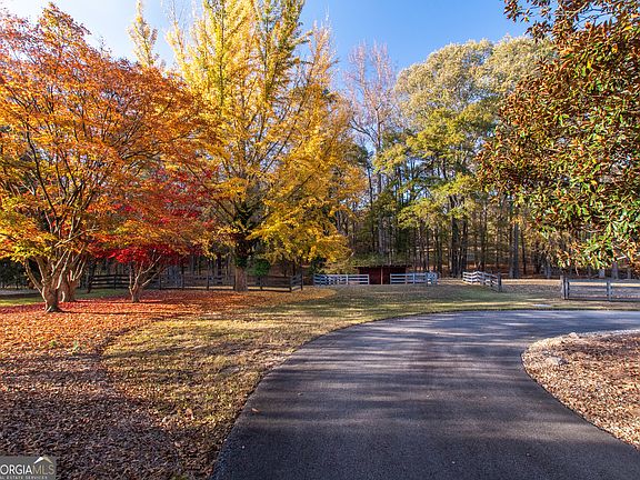 As you arrive and pass through the elegant and electric ornamental iron gate, you're immediately transported onto a breathtaking estate that blends luxury, functionality, and peaceful country living. This meticulously maintained two-story, all-brick home sits proudly on 8.22 fully fenced and cross-fenced acres, offering unmatched privacy, sweeping views, and endless possibilities. Whether you're an equestrian, a hobby enthusiast, or simply someone who dreams of space and serenity, this is a property you simply don't see in this area. Your first steps onto the estate set the tone: a beautifully landscaped walk leads you to a welcoming rocking-chair front porch, the perfect place to unwind and take in the beauty of the grounds. Inside, an inviting foyer opens to a warm, elegant interior. The Formal Living Room features crown molding and wainscoting and flows seamlessly into the Family Room, highlighted by a brick-surround fireplace with gas logs, dual ceiling fans, and recessed lighting. A convenient powder room is located just off the Family Room. The spacious, bright gourmet kitchen features tile flooring, crown molding, a built-in custom pantry with pull-out shelves, Corian countertops, abundant cabinetry, tile backsplash, breakfast bar, and a breakfast area with a bay window, -perfect for casual meals or morning sunlight. The Formal Dining Room, complete with crown molding and chair rail, provides an ideal setting for hosting gatherings and holiday dinners. Also on the main level is the Primary Bedroom, paired with a well-appointed Primary Bathroom offering crown molding, tub/shower combination, tile flooring, linen closet, and a conveniently located laundry room. One of the highlights of the home is the fully enclosed sunroom, designed for year-round enjoyment. From the sunroom, step out onto two expansive decks overlooking the sparkling saltwater in-ground pool-a private oasis perfect for entertaining, relaxing, or simply enjoying the view of your own acres of beauty. Back inside and Upstairs, you'll find two oversized bedrooms, each with walk-in closets, walk-out attic access, and their own full bathrooms-one with tile flooring and a walk-in shower, and the other with tile flooring and a tub/shower combination. Ideal for family, guests, or added privacy. The finished terrace level is a true retreat, offering a complete in-law or guest suite perfect for multi-generational living or extended stays. It includes a kitchenette, remodeled full bath with tile-surround tub/shower combination, walk-in closet, spacious great room, bedroom, and its own brick-surround fireplace-providing both comfort and independence. Outdoors, the estate becomes a showpiece. Mature landscaping highlights stately oak trees, Japanese maples, and a prized ginkgo tree. Wide, open pastures-combined with 5 sections of fencing-make the property ideal for horses, cows, donkeys, and more. Two barns, each with 4 stalls, along with two canopy storage sheds, offer exceptional functionality for animals, equipment, or hobbies. The magical Bear Creek winds gently through the property, with a charming wooden bridge leading to additional private acreage-a peaceful haven perfect for exploring, picnicking, or quiet moments surrounded by nature. Recent updates ensure the home is fresh and move-in ready: new interior paint, premium LVP flooring, and plush new carpeting. Additional upgrades include dual HVAC systems, a whole-house surge protector, gutter guards, and a dual water supply-county water for the home, plus a drilled well for irrigation and livestock. This one-of-a-kind estate is truly more than a home-it's a lifestyle. With its rare combination of space, comfort, craftsmanship, and natural beauty, it offers a level of serenity and luxury that's almost impossible to find. Homes like this don't come along often-come tour this extraordinary retreat and experience for yourself why it's the perfect place to call home in every season.