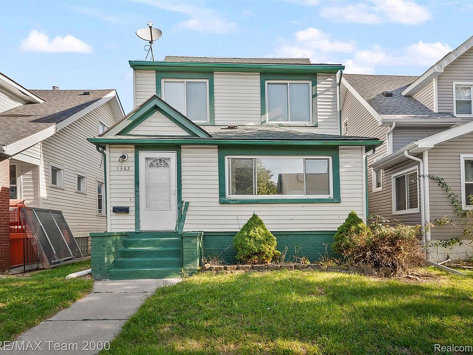 Spacious and Move-In Ready! This beautifully updated home offers nearly 1,800 sq. ft. of living space with 5 bedrooms and 2 full baths. Enjoy brand-new carpeting and fresh paint throughout! The main level features a bonus room off the front door, generous living room, a formal dining room, and an updated kitchen with newer cabinets, refrigerator, and stove will be provide. The cozy family room includes a doorwall that opens to a large deck—perfect for outdoor entertaining. The main-floor primary bedroom includes a private full bath. Upstairs you'll find four additional bedrooms and a second full bathroom. Convenient rear parking for two vehicles on a concrete slab with alley access, plus additional street parking. A great opportunity to own a large, updated home—schedule your showing today!