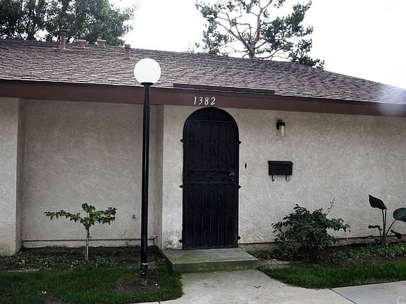Perfect starter home/investor's dream! This beautiful end-unit, single story condo features 2 bedrooms and 1 full bath that connects to a separate dressing/vanity area in the master suite. Upon entry, you'll be welcomed by a cozy living room with cathedral high-vaulted ceilings and plenty of bright, natural light. Enjoy viewing your very own spacious private patio from the living room, dining area, and even the recently updated kitchen with granite countertops and tile flooring. The outside patio is also equipped with a custom cover and provides direct access to the one-car garage with built-in storage. To top it all off, this home comes fully loaded with recessed lighting, dual pane windows and sliding doors, central heating and cooling, newer carpets, and an indoor laundry area. Located in a quiet, well-kept community with a pool, spa, and plenty of guest parking, you'd be just a few blocks away from amazing shops, restaurants, movie theater, and grocery stores! MOVE-IN AND RENTAL READY! FHA APPROVED!!!