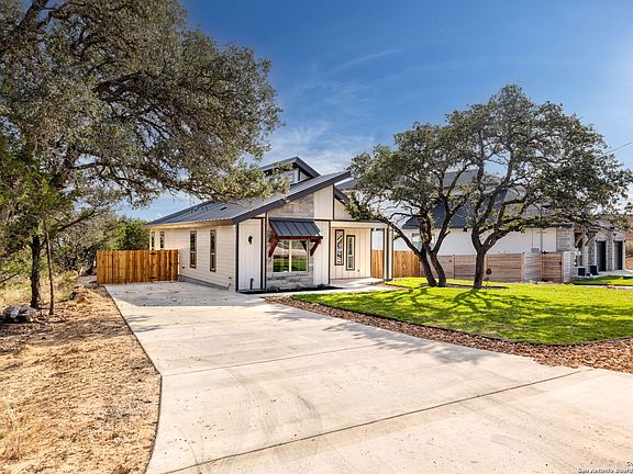 Stunning new home in Spring Branch. This impressive home offers vaulted ceilings, 3 bedrooms, 2 bathrooms! An energy efficient home with spray foam insulation comes with 1-2-10 builders warranty! Upon entering the home, you will be welcomed by a stunning vaulted ceiling that opens to the living room, this open concept home has a stunning kitchen with modern upgraded features to include quartz throughout. The bright and open floor plan creates an easy flow between the living, dining, and kitchen areas, making it perfect for entertaining. Spacious bedrooms, each of which offers ample space and natural light, and 2 bathrooms. The spacious primary suite boasts faux wood beams, double vanities, glass enclosed shower, large walk in closet. Backyard offers stunning landscaping, covered patio and privacy. Home is prewired for surround sound. Quality craftsmanship is evident throughout this new built home. Home features shaker kitchen cabinets, quartz countertops, stainless steel appliances, upgraded tiles and bathroom vanities,Can lighting, Decorative wood panels and moldings throughout the home. Spectacular Home In A Great Community that offers: fishing, tennis, pickle ball, swimming pool and lake access to boat ramp 11 at Canyon Lake.