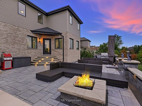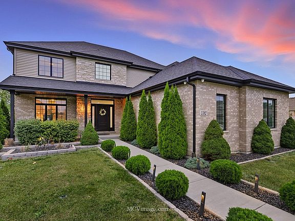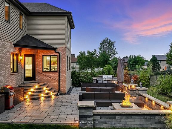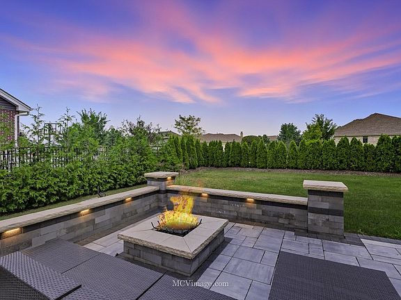 Luxury, comfort, and craftsmanship come together in this remarkable 2020-built home, transformed with nearly $200,000 in custom upgrades. From the moment you arrive, the attention to detail is evident. Step through the dramatic two-story foyer and you'll find a flexible front room perfect for an office, study, or sitting area. The heart of the home is the chef's kitchen, fully reimagined with top-tier Viking appliances, quartz countertops, custom cabinetry with crown molding and glass accents, color-changing undercabinet lighting, a farmhouse sink, and a 9' island designed for gathering. A walk-in pantry adds both style and function. Hardwood floors, oversized trim, designer lighting, and custom millwork carry throughout the main level, while a large mudroom with built-ins and a well-appointed second-floor laundry room add everyday convenience. Upstairs, the primary suite is a private retreat with dual walk-in closets and a spa-like bath featuring a double vanity with granite counters, soaking tub, and separate shower. The full finished basement is designed for entertaining, complete with a wet bar, built-in wine refrigerator, custom wine racks, recessed lighting, and a spacious recreation area. A stylish half bath completes the lower level. Outdoors, the backyard has been transformed into an oasis with an expansive stone patio featuring brick details, a built-in grill station, fire pit, and extensive lighting that illuminates the yard, landscaping, and walkways. A 3-car garage with soaring ceilings, epoxy floors, tall garage doors, and custom cabinetry, concrete driveway with stone accents, a whole-house water filtration system, and exterior security cameras for peace of mind. This home is ideally located near downtown Lemont's dining, shopping, festivals, and nightlife, with nearby The Forge Adventure Park, golf courses, and Blue Ribbon award-winning schools. Truly a one-of-a-kind property that blends elegance, upgrades, and modern living!