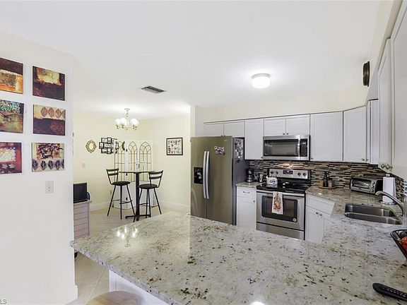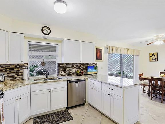 Unique opportunity to own a nicely updated home with 2-car attached garage, Southern exposure, and BEAUTIFUL expansive lake frontage! Enjoy numerous wading birds every morning from your lanai, or put in your own private pool if you wish! The upgrades at this beautifully-maintained home are too numerous to list: new roof by Kelly Roofing 2015, new Trane AC 2018 with 10-yr warranty, windows replaced 2004 except sliders and garage window, all kitchen appliances replaced 2018 along with granite countertops and white cabinetry, master bath completely and beautifully redone 2017, guest bath nicely redone 2018, extra insulation added in attic 2010, and new lanai screens after Irma. Even a fenced dog run! All tile floors - no carpet to replace! Southern exposure makes this home feel light and bright and lives larger than it is. And - NO HOA fees! Flexible breakfast area could be small den/office. This gem is walking distance to Publix, numerous restaurants, drug stores, shopping, a short bike ride to our sandy beaches, or to Old Naples! (Lattice on lanai is there to protect screens from cat and can be easily removed if buyer wishes.) Don't miss this one!