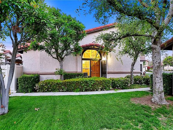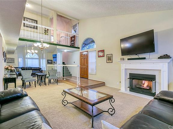 EXCELLENT LOCATION IN THE BACK OF A QUIET CUL-DE-SAC. Great curb appeal with manicured landscape, a concrete driveway and an attached two car garage. Walkway leads to the front door which opens to a spacious & open floor plan. Wood floors open to a carpeted family room with vaulted ceilings, a fireplace & grand windows offering plenty of natural light. Kitchen offers stainless steel appliances, wood floors, a breakfast bar & a spacious breakfast nook with a slider to the covered patio in the backyard. A formal dining room with chandelier is currently used as a sitting area. There is a downstairs half bathroom & direct access to the garage. Upstairs, you'll find a spacious hallway with built-in cabinets & three spacious bedrooms. The master bedroom offers vaulted ceilings, a walk-in closet, a slider to a balcony with a view & a master bathroom. The master bath offers granite countertops, newer cabinets & a shower/tub with sliding glass enclosure. The upstairs guest bath offers tiled floors, a single sink & a sliding glass shower door. The backyard features a covered patio, garden area & high vinyl fencing for privacy. Parklike greenbelts with walking trails and a recreation area make this a perfect place to call home. Swimming pool, spa & a clubhouse.