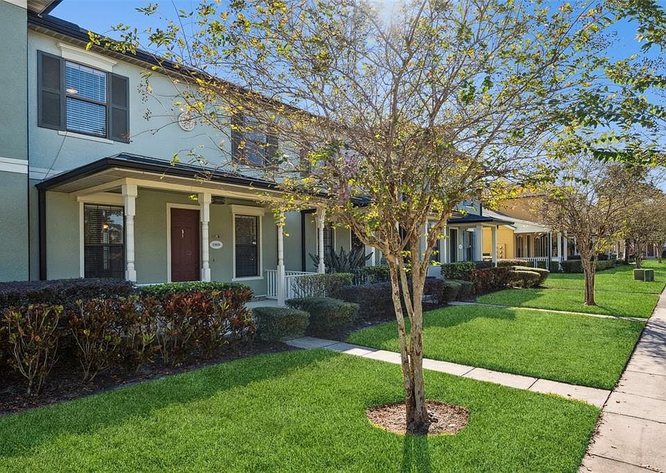 One or more photo(s) has been virtually staged. Situated in one of the only townhome communities in the heart of Hunters Creek, with this home you’re surrounded by top-rated schools, parks, recreational activities, and the always hard to find gem in Central Florida---shopping, dining options, medical offices, and essential services within walking distance. TOUR THE HOUSE WITH THE VIRTUAL TOUR and VIDEO WALK THROUGH LINKS. Step up to the charming front patio, where you can enjoy your morning coffee while greeting friendly neighbors out walking their pets. As you step inside, you’ll notice how spacious the family room and dining room are, with high ceilings, tiled floors, and bright natural light. The family cook will love preparing meals in the adjacent kitchen, which features plenty of storage space in the 42” inch wood cabinets, stainless steel appliances, and an elegant new fridge! Step out back to the private patio space between the house and the 2 car garage, where the blank canvas can become your future garden, relaxing oasis, or space to have dinner al fresco. Retreat upstairs to your primary suite, which features a lovely tray ceiling, large walk-in closet, and an en suite bathroom with dual sink vanity, soaker tub, and large tiled shower with seamless glass door. The two additional secondary rooms and full bath with a shower/tub combo round out the upper level. Other features include a new roof (2023), new water heater (2022), and new A/C (2019), and the washer and dryer convey with the house! You’re located just down the street from the neighborhood swimming pool and playground, included in the modest HOA fee, which also covers exterior maintenance like regular painting, landscaping, and roof. Plus, as a resident of Hunters Creek, you’ll enjoy access to the parks, playgrounds, tennis and basketball courts, baseball and soccer fields, dog park, walking trails throughout the larger neighborhood, and regular annual community events the neighbors all look forward to. Hunters Creek is situated in the perfect location to be able to get around Central Florida easily, whether it’s downtown for a concert or game, to Orlando International Airport, or to any of the local theme parks. Come discover your carefree living here at 13820 Beauregard Place today!