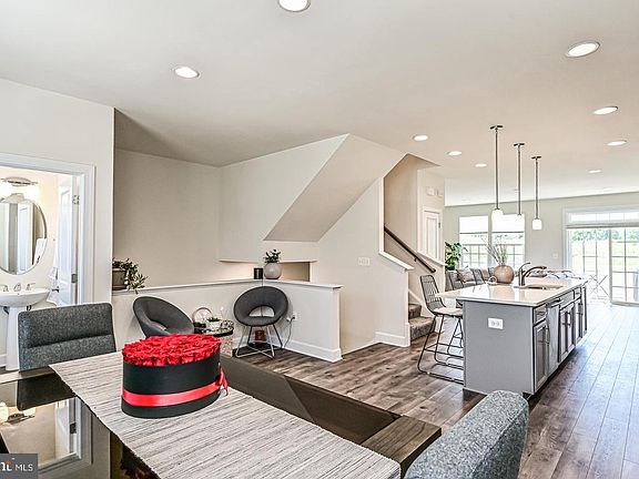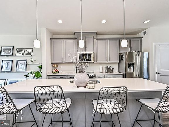Welcome home! This four years young TH features an open floor plan and high ceilings. There's upgraded LVP flooring throughout the main level and stairs, with tasteful gray cabinets, upgraded SS appliances, an expansive white quartz kitchen island in the kitchen, and a spacious deck. In the lower level is the rec room and powder room. From here you can walk out to a stone patio and a fully fenced in yard. There's many things to love about this home but ease of front load parking, a fully fenced in yard , private backyard facing the common area, bedroom level washer/dryer, finished garage with cabinets, epoxy floor and a Tesla car charger is just a start! Community pool dog park, clubhouse, tot lot, conveniently located to all major roads, grocery, restaurants and much more. Available for immediate occupancy.