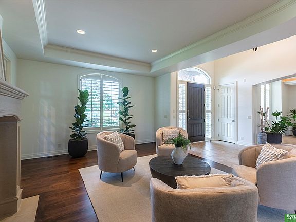 Make a statement of distinction with this exquisite home in prestigious Linden Estates. From the circular drive to the towering stone entry, luxury is evident at every turn. The grand two-story foyer sets the tone, flanked by a dramatic dining room and living room with a double-sided fireplace shared with the Colorado-inspired office. The gourmet kitchen features a Thermador 6-burner cooktop, custom cabinetry, double convection ovens, pot filler, and full-size fridge/freezer. The sunlit great room stuns with wood beams and a striking stone fireplace. Upstairs, each spacious bedroom offers an en-suite, with hidden rooms and a loft. The opulent primary suite boasts dual closets, a spa-like bath, and fireplace. Entertain in the lower level with a full bar, wine cellar, exercise room, and walk-out access to the pool and hot tub. Set on .77 acres with 5-car garage, and exceptional finishes—this is a rare opportunity to own one of Omaha’s finest homes. New paint on the main & second floors.