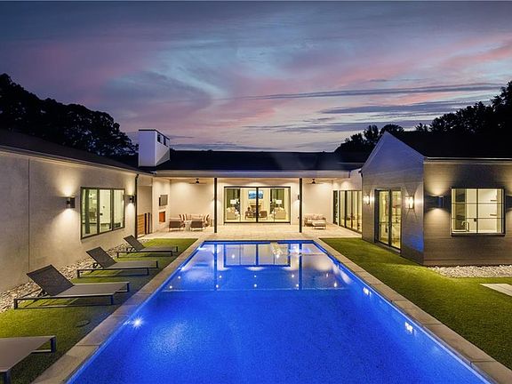 California Dreaming on nearly 8 private acres in Milton. This exquisite, one-level-living home is newly built and is fabulously suited to a relaxed lifestyle. Ideally located about 3 miles from Downtown Alpharetta. Enormous front yard is surrounded by trees. Relaxing front patio with fireplace and sitting area. Breathtaking entry into home allows you to view the vaulted open Great Room, Kitchen, outdoor covered patios and private pool. Large Great Room is loaded with sunlight and opens out to the front patio as well as having a slider door that opens out to the back patio and pool. Beautiful Kitchen with top-of-the-line appliances, custom cabinetry, built-in coffee area, breakfast bar, and back pantry area with lots of storage and shelving. Fabulous Dining Area opens out to a private courtyard on one side and covered patio and pool on the other side. The private courtyard can accommodate a spiral staircase up to a flat rooftop area. Office overlooks large front yard. Luxurious Owners Suite overlooks private yard and includes a beautiful owners bathroom with spa shower, soaking tub, double vanities and spacious walk-in closet with built-ins. Three additional bedroom suites all have private bathrooms and large closets with lots of storage. 5th possible Bedroom potential if pool house is used as a separate suite with its own bathroom and closet space. Exercise Room overlooks pool. Breezeway opens to mud room with custom built-ins and fabulous laundry room. Superb outdoor setting features a covered patio with fireplace, saltwater pool with spa and water feature, and pool house with beverage area, relaxation space, storage closet, and full bathroom with shower. Beautifully appointed home with gorgeous fixtures, beautiful flooring, serene tones, clean lines, and relaxing ambience both indoors and out. Three car garage and space to expand to many more. Extremely private acreage. Absolutely stunning house and grounds.