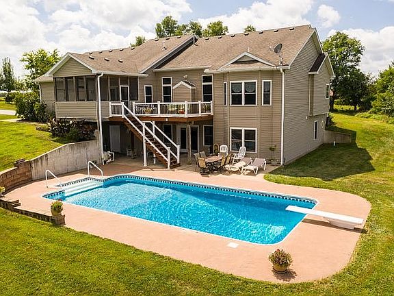 The views are amazing from this home set on 10 acres of one of a kind property! Imagine sitting on the deck overlooking the in-ground pool with a vista of woods and fields just beyond. Seasonal colors are unbelievably gorgeous, Mature orchard trees abound and it's as peaceful as can be. The property has a custom built home (3400 SqFt -3 bedroom - 2.5 bath) with countless extra built in features and finishes. Unique antique oak carved fireplace mantle, bay windows, pine hardwood floors, hickory cabinets and quartz Cambria counter-tops in the extra-large kitchen, large mudroom and spacious laundry room combined . Attic fan, extra insulation, water softener, and bonus workspace in the two-car garage are a few behind the scenes extras. Located off I-70, it's country living minutes from Columbia.
