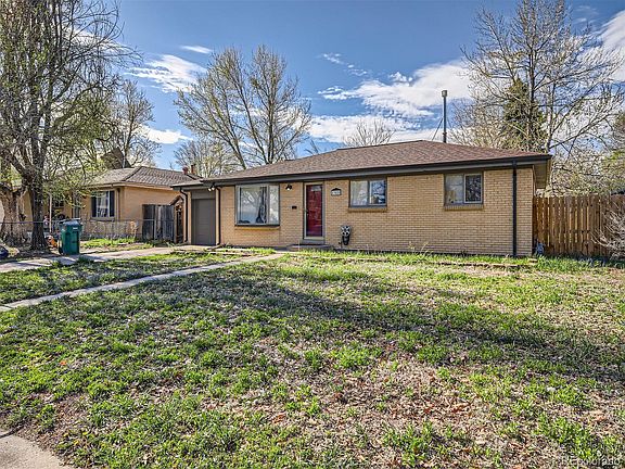 SELLER IS OFFERING 2/1 BUY DOWN! Welcome to this 5 bedroom, 2 bathroom brick ranch on a large lot. This home features a finished basement on very quiet street in Morris Heights. Located on the east side of I-225, you'll find easy access to the Anschutz Medical Campus, VA Hospital, many restaurants on Colfax, as well as DIA, which is a quick 15 min drive away. Light rail and bus routes are also conveniently nearby. A fully fenced yard with large shade trees gives this home a cozy appearance and great curb appeal. Its full brick exterior is energy efficient in the summer and winter months. The new home owner will enjoy the low maintenance exterior for the life of the property. Upon entering the home, you will notice hardwood floors. The kitchen was remodeled with bright cabinets and stainless steel appliances. The large living room is inviting, with its large picture window that brings in lots of natural light. The open dining room sits just off the covered patio to the backyard. The upstairs alone has almost 1200sqft of living space. The total bedroom count is 5, with 2 bedrooms (non-conforming) in the basement. The basement has nice high ceilings with a full laundry and plenty of room for storage. This property is turn-key and ready for a new homeowner to enjoy. Cottonwood Park is just across the street, with a full basketball court, playground, and walking path. Sand Creek Regional Greenway is right down the road (less than 10 minute walk away) and is a great trail that connects to many major Denver metro trails as well as the nearby Sand Creek Park and Star K Ranch. This home is CRA eligible. A 2% credit of loan balance is available on primary homes, second homes or investment properties.