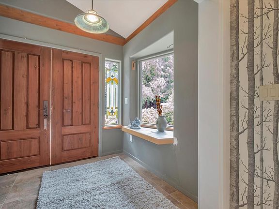 Nestled on 4.67 acres of picturesque land, this stunning property offers a serene retreat amidst nature's beauty. As you drive up the winding driveway, you'll be greeted by a park-like setting, with lush greenery and mature trees providing both privacy and tranquility. Step into your own botanical paradise with a spacious garden area, perfect for cultivating your favorite flowers, herbs, and vegetables. Indulge your culinary aspirations in the gourmet kitchen, equipped with stainless steel appliances, ample counter space, and custom cabinetry. From casual weeknight dinners to lavish entertaining, this chef's haven offers both style and functionality, making every meal a delight. Entertain in style in the large great room, featuring soaring ceilings, abundant natural light, and a cozy wood stove. Whether you're hosting family gatherings or intimate get-togethers, this inviting space provides the perfect backdrop for creating lasting memories with loved ones. Step outside and soak in the amazing views from your rear deck and patio. Whether you're sipping your morning coffee as the sun rises or enjoying a glass of wine under the stars, this outdoor oasis offers the ideal setting for relaxation and contemplation.