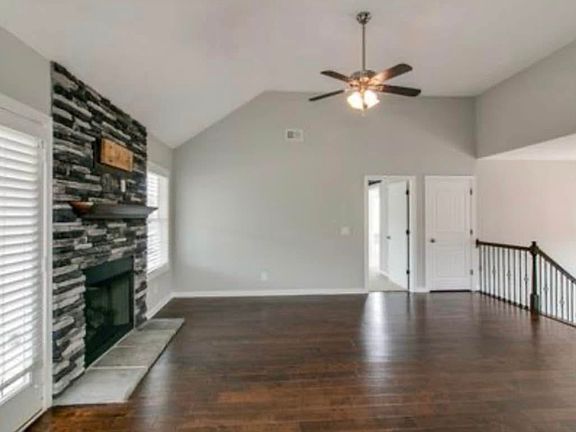 This house is a 4 bedroom,3 bath home with a lower level. Has a fire place, fenced in back yard, covered patio with fan. Back splash in the kitchen, stainless appliances. Military neighborhood, quiet, peaceful, family oriented.