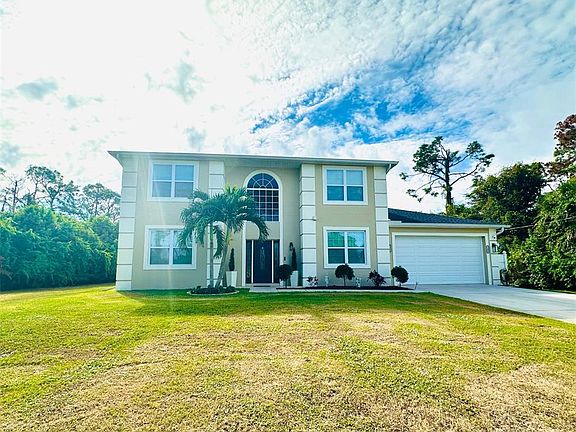 Completely renovated and move-in ready! This stunning & rare find 2-Story, 3-bedroom, 3-bath home has been beautifully updated from top to bottom. Step through the main foyer and be greeted by elegant quartz countertops with a custom inlay tile, complemented by new white cabinetry and modern finishes throughout. Enjoy ceramic tile flooring in the main living areas and new carpet in the bedrooms for comfort and style. Each bathroom has been fully remodeled with contemporary fixtures and tasteful design. This home truly feels better than new with thoughtful updates and attention to detail within nearly 2300sqft of finished space. Situated with no neighbors on either side or in front, you’ll love the peace and privacy this location offers. The backyard is an open palette to let your design ideas run wild. Build your perfect Florida Oasis or tranquil garden — all while being close to all new shopping centers, great schools, abundant dining options, and everything North Port has to offer. Short Drive to Venice, Wellen Park, Englewood Beaches or Port Charlotte.