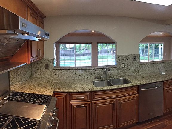 Seeking a long term, qualified tenant to call this home. Extensively remodeled home in a quiet neighborhood. Large kitchen with custom cabinets, stainless steel appliances including a gourmet gas range. Open plan to the large sun room, opening to the sparkling pool and spa. Great for entertaining. Large Great Room with vaulted ceilings, with access to the to the rear garden. Garden has 2 sheds and several fruit trees. Large master bedroom suite, with a large walk in closet. Jetted tub and separate shower. Laundry area with hook ups. Central A/C and heat. This home has solar power, making utility bills more affordable. Renters Insurance is required. Pool and gardening services are included. Tenant pays all utilities. Good credit required to apply (FICO 700+)