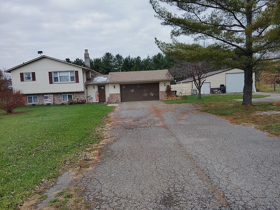 Single family bi-level home with inground pool and 40' x 30' steel building.