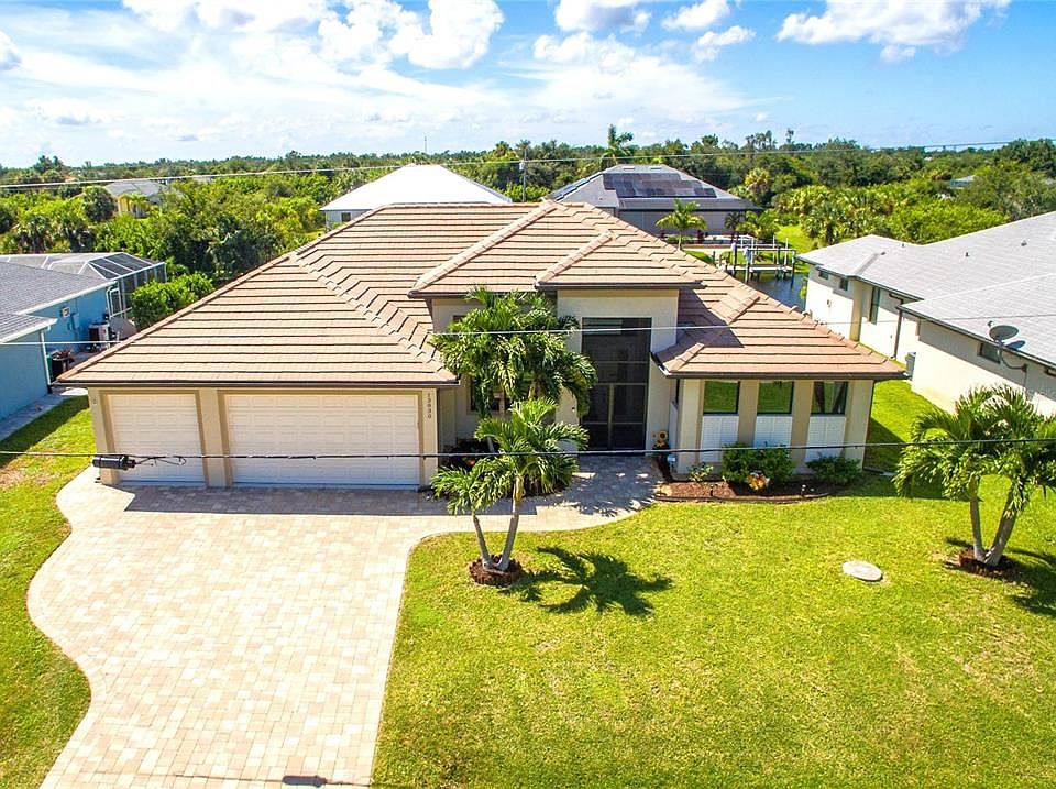 NEW and IMPROVED PRICING. SELLER SAYS GET IT SOLD! Luxury Living with Gulf Access. Welcome to your dream waterfront pool home nestled in the desirable and fast-growing community of South Gulf Cove! Offering direct access to the Harbor and Gulf from your private backyard dock and boat lift, this property is a boater’s paradise and an entertainer’s delight. This home is loaded with premium features, including a durable tile roof, open cell spray foam insulation for energy efficiency, and underground utilities. The beautifully landscaped yard features a full irrigation system, while the brick paver driveway and walkways add an elegant touch. The inviting front entry showcases upgraded 8-foot double leaded glass doors, a front screened enclosure, and an automated roll-down hurricane shutter for added protection. Step out back to a stunning heated pebble-tec pool, perfect for year-round enjoyment. The backyard is a true oasis, complete with a summer kitchen, and the property is engineered for resilience with impact-resistant low E PGT glass windows and doors, as well as a garage door rated for 160mph winds. A newly installed roll-down screen on the smaller door adds convenience & functionality. Inside, you’ll find a thoughtfully designed split-bedroom floor plan that maximizes space and privacy. The home features grand tray and step ceilings with intricate crown molding, tile flooring set on the diagonal, and 16-foot 90-degree pocket sliders that seamlessly blend indoor and outdoor living. The chef’s kitchen is a masterpiece, boasting 42-inch staggered wood cabinets with crown molding, dovetail construction, and undermount soft-close drawers. Granite countertops in both the kitchen and bathrooms exude elegance, while stainless steel appliances and a brand-new washer and dryer provide modern convenience. This home is built tough, combining beauty and reliability. From the upgraded finishes to the meticulous craftsmanship, every detail has been carefully considered. Whether you’re enjoying your morning coffee on the lanai, taking a dip in the pool, or boating to the Gulf, this property delivers the ultimate Florida lifestyle. Don’t miss the chance to own this gem in South Gulf Cove. Schedule your private showing today and make this waterfront paradise your own!