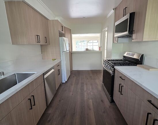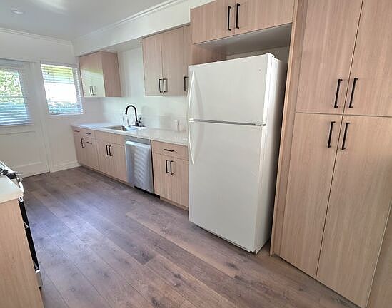Welcome to this beautifully renovated 2-bedroom, 1-bath Sherman Oaks unit that feels more like a single-family home. Offering the perfect blend of comfort, style, and privacy, this residence features its own private entrance and a charming yard a rare find in the heart of the city. Step inside to discover a brand-new kitchen with modern finishes, sleek cabinetry, and updated appliances, alongside a fully renovated bathroom designed for both elegance and functionality. The bright and airy living spaces flow seamlessly, and from the living room's large sliding doors, you can step right into your spacious private yard perfect for barbecues, outdoor dining, gardening, or simply unwinding under the California sun. With its thoughtful updates, inviting outdoor space, and the feel of a standalone home, this exceptional Sherman Oaks retreat is truly move-in ready and waiting for you to call it your own.