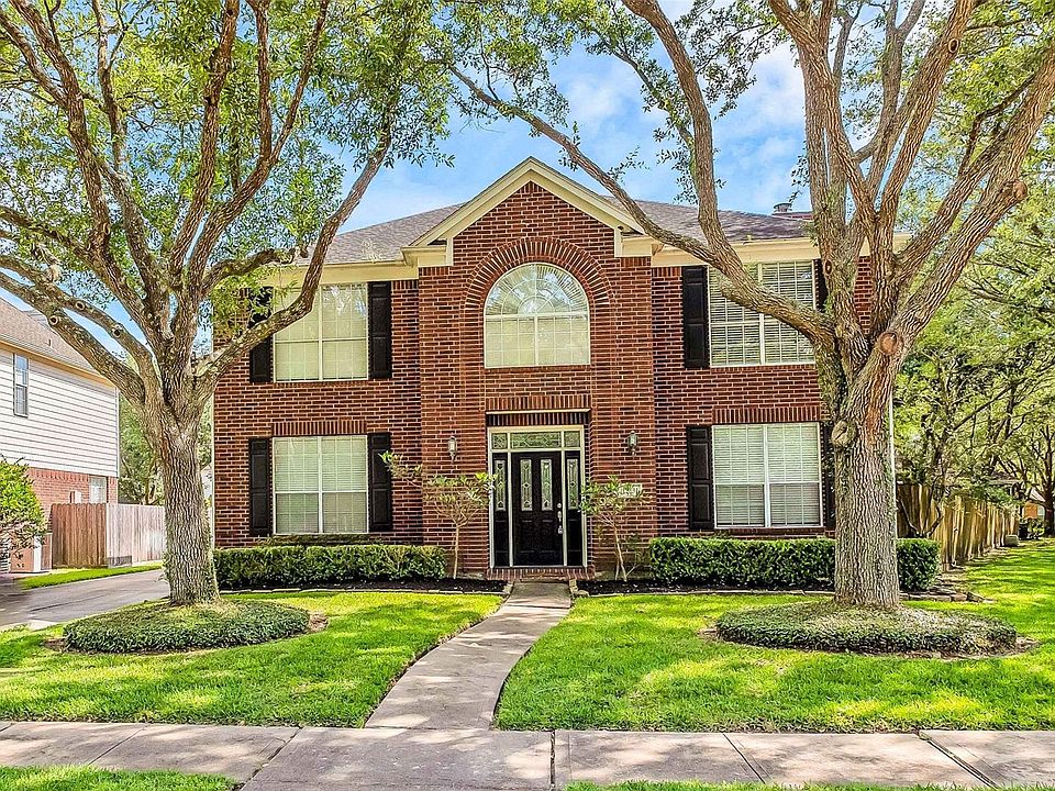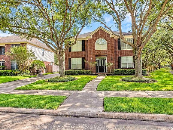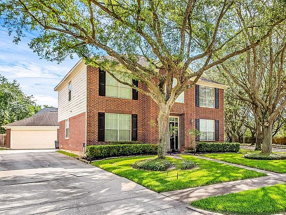 Beautiful 4 bed 2.5 bath brick home situated on a desirable corner lot. Entering you are greeted with wood look tile flooring and elegant crown molding that flows throughout the home. To the left is a formal dining room, and to the right a formal living room, perfect for entertaining. Kitchen features granite counters, stainless steel appliances, and a bright breakfast area. Living room offers a cozy gas log fireplace and plenty of natural light. Upstairs you will find all 4 beds, each with walk in closets, along with an additional flex room. Large primary suite boasts an ensuite bath with dual sinks, a Whirlpool jetted tub, separate glass shower, and two closets. Secondary bath includes double sinks and a tub shower combination. Outside to enjoy a stone patio and an oversized fully fenced backyard. 3 car garage offers versatile options, with one side ideal for an office, workshop, or golf cart storage. Wahser, Dryer, and Refirgerator included!