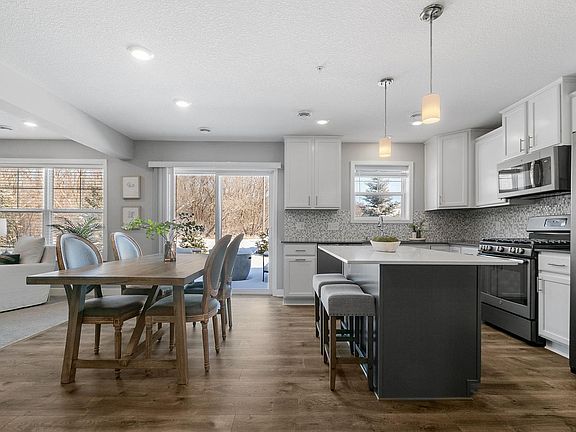 This stunning two-level townhome, newly built in 2019, offers a great layout and beautiful finishes that are a must see! The main level features an open-concept with a fantastic kitchen, complete with an eat-in dining area and large pantry. The spacious living room provides lots of sunlight through several windows that look out to your own private walk-out patio. Featuring all 3 bedrooms and laundry on the upper level, the second story also has a bonus loft area with plenty of room for an in-home office or play area! The primary suite is complete with a private ensuite and walk-in closet. Perfectly located in a prime location just minutes from the Arbor Lakes shopping & dining, Elm Creek Park Reserve and Central Park!