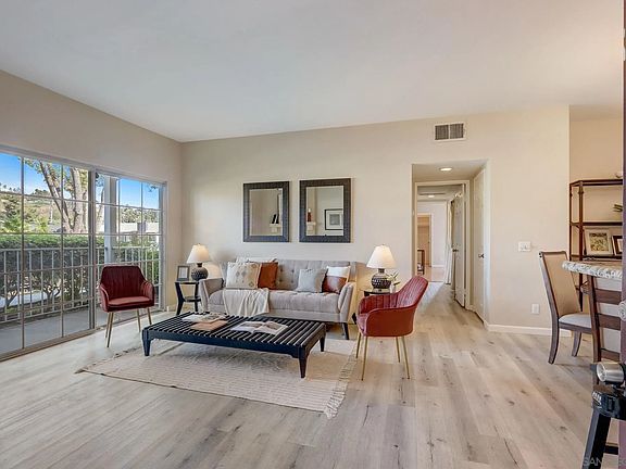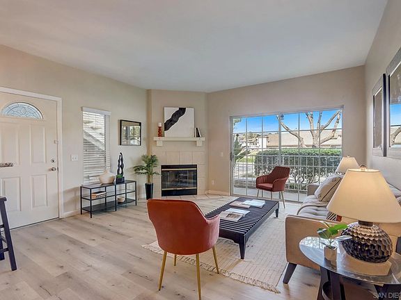 MOVE-IN READY single level ground floor end-unit with a detached two-car garage located within the highly sought after community of Country Roads in Poway. Rarely available 3 bedroom featuring neutral paint and trim, central AC, a cozy fireplace, in-unit laundry, and durable flooring throughout. An open floorplan with large windows basks the home in an abundance of natural light. A beautifully appointed kitchen boasting granite countertops, custom lighting, stainless steel appliances, and breakfast counter seating that opens to the living area. There is a spacious primary suite offering exterior patio access, a walk-in closet, and its own en-suite bathroom. Outdoor living extends to two spacious patios, one off the living room and one off the primary bedroom. Great community amenities including a sparkling pool and spa. Conveniently located, just minutes away from shopping, dining, golf amenities, Poway Unified School District, Interstate 15, Highway 67, plus so much more. FHA and VA approved complex. Don’t let this opportunity pass you by!