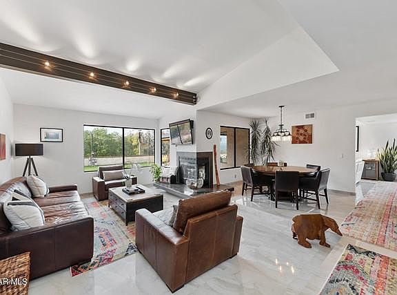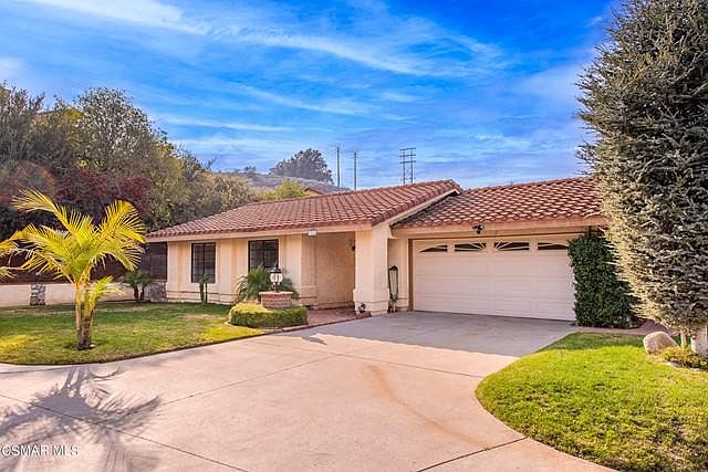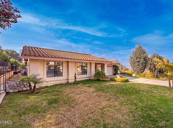Stunning single story on a beautiful view lot. Located at the top of sweeping driveway, the home has views overlooking Moorpark and beyond. A wonderful courtyard welcomes you into stunning interior. Custom marble floors blend with the clean and bright aesthetic. The living room has vaulted ceilings, a dramatic fireplace and it opens to the dining room. If you love to entertain, this is the ideal home. The cozy family room has an additional fireplace and connects to the informal eating area and kitchen. Designed for the chef in mind, the kitchen has abundance of granite counters and cabinets. The master bedroom has vaulted ceilings and a beautiful view through the slider. The en-suite bathroom has dual sinks and a shower with custom marble. The secondary bathroom also has dual sinks and custom stone work. The backyard is set for entertaining. A covered pergola and outdoor lighting create a space for year round California living. RV Space also available!