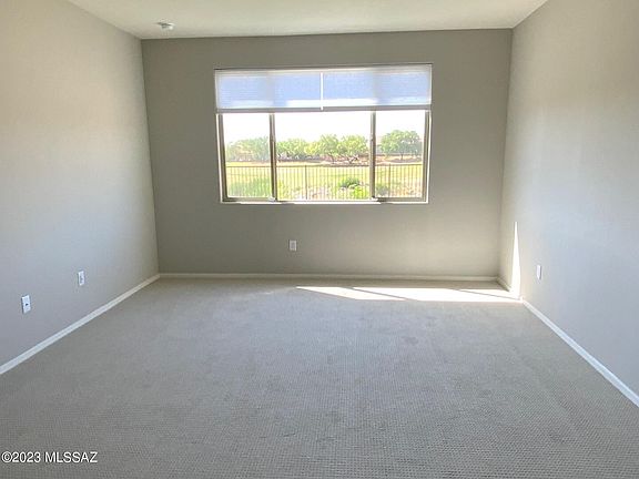 GOLF COURSE HOME! Rancho del Lago - Ready to move in! Built 2022. Contemporary 3 Bdrm+Den, 2160 s.f. Del Lago Golf course, lake and sunset views from enclosed glass patio (w/rolling screen), picture windows at Great Rm, Dining & Primary Suite. Den/Office off of Foyer. Spacious kitchen island/breakfast bar. Walk-in Pantry. Newer stainless appliances including gas range, DW, refrigerator. Beautiful ceramic plank flooring, carpeted bedrooms, grey/white interior paint scheme. White cabinets, quartz counters. Luxurious Primary Bath with custom tiled full shower, dual sinks, linen closet, & lg walk-in closet. Split floorplan. Extended pavered patio, artificial turf. View fence. Home warranty. HOA only $24/mo! Vail School District. Close to golf, grocery & restaurants, schools & I-10.