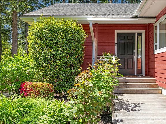 Easy one-level living in this gem of cottage on desirable Manzanita Road. Quality steel-beam construction, vaulted ceilings, and walls-of-windows allow for wonderful southern and western light. Cherry hardwood flooring, custom built-ins, a remodeled primary bath and a spacious Chef’s kitchen set this home apart from the rest. Three bedrooms plus an office/flex space. Outside find beautiful trees that provide privacy and multiple sunny garden spaces for growing flowers and veggies. Mature storybook plantings include fruit trees, dogwoods, raspberries, peonies, and hydrangeas. Large back deck with hot tub. 3-car garage with shop space and an attractive custom-paver driveway with RV parking. Beach access nearby. A rare island offering.