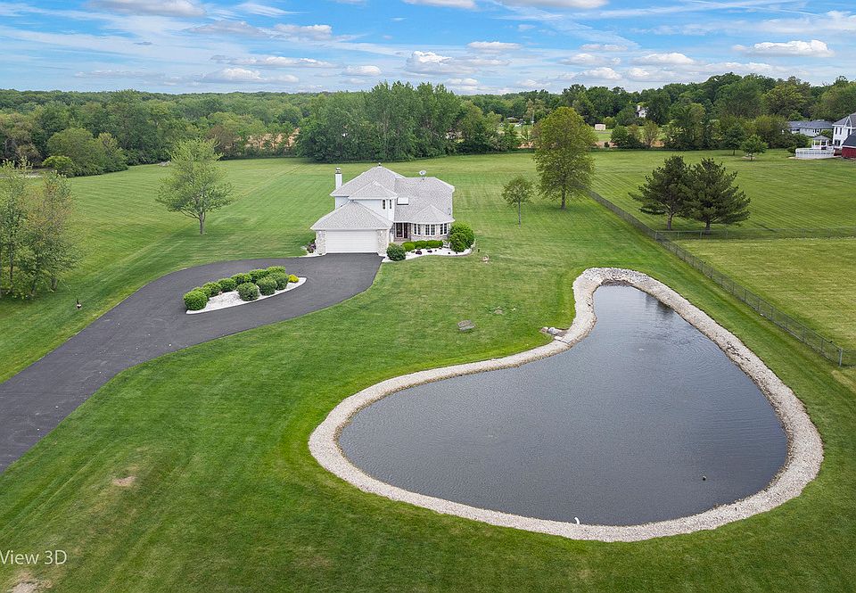If you are looking for your own private sanctuary, here it is! This home is located on 2.63 acres of paradise with its own 18' deep pond that is fully stocked! You can wake up every morning and do a little fishing in your own private sanctuary. AND you are only 9 minutes to Berkots for groceries, 7 minutes to Gallagher's Pub or Manhattan Pizza and Wings. You are only 18 minutes to downtown Frankfort!!! While you are definitely living the country life, the neighborhood is very family friendly! Enter the home into a stunning foyer with a winding staircase to the upper level. The entire home is hardwood flooring, except the sunroom. Approximately 2,800 square feet of finished living space plus an unfinished basement! Absolutely gorgeous open floor plan with a formal living room, dining room, huge kitchen with eating area that opens up into the family room. So many cabinets and lots of counter space in this spacious kitchen, including newer all stainless steel appliances. Windows were replaced 4 years ago throughout the home. The sunroom was added on to the home in 2014 with heat and a/c and is amazing!!! What a view to sit back and enjoy nature! And yes, you can have up to 2 horses on the property. Also on the main floor is a newly updated full bathroom! The winding staircase takes you upstairs where there are three bedrooms, including a large primary bedroom with big walk in closet and spa bathroom, including a brand new skylight! The full unfinished basement is ready for whatever you need it to be and is roughed in for a bathroom! Also included is a Generac back up generator and the furnace and a/c are only 5 years old!!