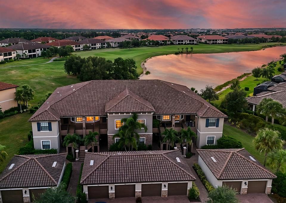 Imagine coming home to a place that feels more like a private retreat than a condo. Tucked inside the resort-style, guard-gated Esplanade Golf & Country Club of Lakewood Ranch, this beautifully renovated home offers a FULL GOLF MEMBERSHIP and one of the most peaceful settings in the community—only eight units per building and serene water views right outside your door. Built in 2020 by Taylor Morrison and upgraded throughout, this residence makes a stunning first impression with its Spanish barrel tile roof and extended paver driveway. Inside, over 1,500 square feet of thoughtfully designed space gives you the flexibility and comfort you’ve been looking for. There are two bedrooms, two bathrooms, and a versatile flex room with frosted sliding doors that can serve as a private office, den, or guest space. Step through the shiplap-accented entry and you’re greeted with 13-foot ceilings, ceramic tile flooring across the entire home, and an open layout perfect for everyday living and entertaining. The kitchen feels like it belongs in a model home—quartz countertops, stainless steel appliances, glass tile backsplash, under-cabinet lighting, white cabinetry, and not one but two pantry spaces, including one with pull-out shelves. A cozy breakfast nook completes the picture. The living area features crown molding and fresh paint, adding just the right touch of sophistication. The owner’s suite is a peaceful sanctuary, offering lake and golf course views, dual walk-in closets, and a spa-inspired ensuite with a seamless glass shower, dual sinks, and a private water closet. The split floor plan places the guest bedroom and bathroom on the opposite side for added privacy. Whether you start your day with coffee or end it with a sunset, the screened-in balcony is the perfect spot to relax and soak in the water views and evening skies while golfers pass by in the distance. Living in Esplanade means every day feels like a vacation. Your golf membership is already included, and you’ll have access to a championship course, a state-of-the-art clubhouse with a fitness and wellness center, the Koquina Sand Spa, four resort-style pools (including a lagoon-style heated pool and resistance pool), and endless activities—pickleball, tennis, bocce, dog park, and more. Dining options abound with the Bahama Bar, Culinary Center, and Barrel House Bar and Bistro just a golf cart ride away. All of this is minutes from A-rated schools, Waterside Place, UTC Mall, dining, entertainment, and some of Florida’s best beaches. Luxury, convenience, and lifestyle come together seamlessly—this is the one you’ve been waiting for.