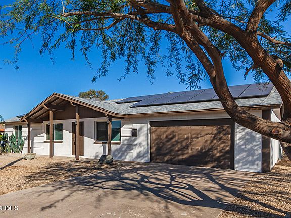 Say goodbye to your APS bill! With 41 solar panels, the seller has NOT had a bill since 2023 and she gets a rebate check at the end of the year! PAID OFF SOLAR, NEWER ROOF, NEWER AC, NO HOA, and home has recently been renovated. This 3 bedroom, 2 bath, 2 car garage has an additional 4th bedroom that is separate from the house and sits on a large CORNER LOT with an RV GATE, a 20 ft Steel shop with solar lights that match the house and located in the Paradise Valley Unified school district which is consistently ranked among the top districts in Arizona and right across the street from Great Hearts!