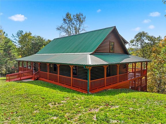 Looking for a serene mountain escape? This stunning log home combines rustic charm with modern comfort, offering plenty of space for family, friends, and multi-generational living. Nestled in a peaceful wooded setting, this retreat provides the perfect blend of privacy and resort-style amenities. The finished lower level is ideal for guests or extended family, featuring two bedrooms, a full bath, and a spacious open living/dining/kitchen area. On the main level, soaring vaulted ceilings, warm hardwood floors, and a stone fireplace create a cozy yet open feel. The kitchen boasts rich stained cabinetry, tiled countertops, and a convenient breakfast bar — perfect for casual meals or entertaining. The owner’s suite is also on the main level and offers a private oasis with dual vanities, a soaking tub, and a separate shower. An additional bedroom and full bath complete this level. Upstairs, you’ll find two more bedrooms, another full bath, and a versatile loft — ideal for a reading nook, office, or game area. Step outside to enjoy the tranquility from the covered, wrap-around deck, where you can relax and take in the sounds of nature. Located within the desirable Talking Rock Creek Resort, you’ll have access to exceptional amenities including swimming, fishing, tennis, and the community’s charming Trout Lodge. Whether you’re seeking a full-time residence, vacation home, or investment property, this inviting mountain retreat offers the perfect balance of comfort, space, and natural beauty.