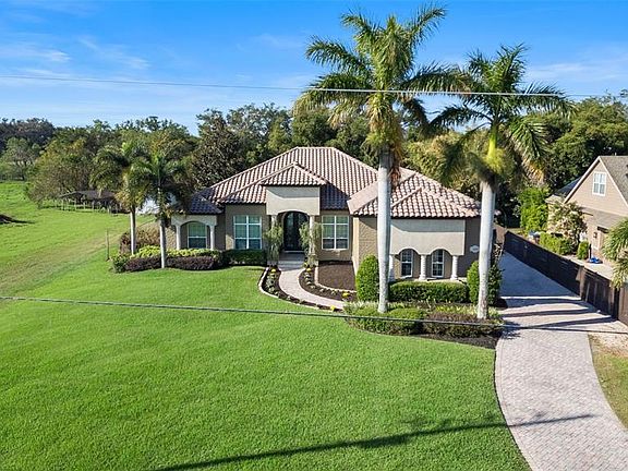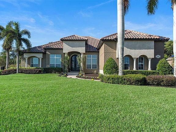 Experience resort-style living at its finest in this elegant 4-bedroom, 4-bath, 3,606 sq ft single-level home nestled on nearly half an acre in Tohopekaliga’s exclusive East Lake Shores. Behind custom wrought iron doors, you’ll find a refined interior with high-end finishes, soaring vaulted ceilings, and seamless indoor-outdoor flow. The chef’s kitchen is a showstopper with dual sinks, stainless steel appliances, waterfall-edged quartz countertops, and a built-in convection/microwave tower. A spacious family room centers around a striking stone-accented water-vapor fireplace and opens through oversized sliders to a screened, heated, saltwater pool—self-cleaning and lit for evening ambiance. The primary suite is a luxurious retreat, featuring private patio access, an additional electric fireplace, and a spa-like bath with dual vanities, a walk-in shower, and a custom closet with a central makeup station. Three additional bedrooms include ensuite baths, built-ins, and even a private entrance with a fenced yard. Bonus spaces include a stylish playroom with drop ceiling detail, a loft with fireplace and built-in TV, and a formal dining room crowned with Swarovski chandeliers. Thoughtful smart features like motorized “zero-iron” blinds, maintenance-free windows, and designer accents elevate every corner of this remarkable home.
