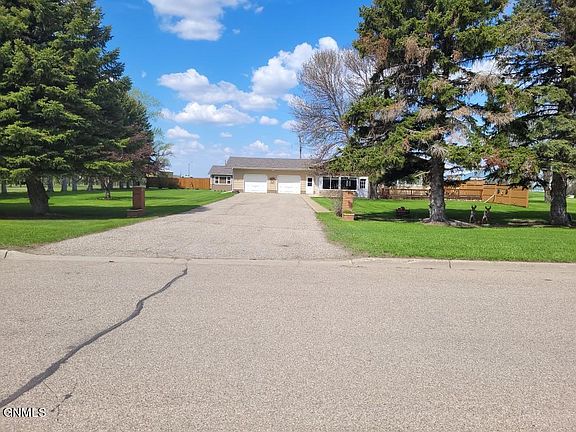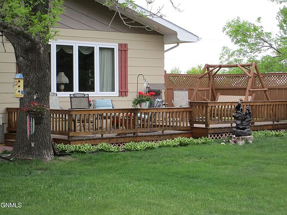 The large yard is bordered to the east and south with large evergreens for added privacy and a large two-tier deck on the front of the home. The home is set back off of the street and has a beautiful front yard. It is located in a very quiet neighborhood on the edge of town where the traffic is light. It is just a short walk up the street to one of two grocery stores and the main street businesses. Also, just a short distance to Several parks, walking paths and a Beautiful Beach Park along the Sheyenne River. Harvey